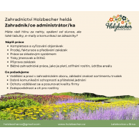 Hledáme posily do našeho zahradnictví na různorodé pozice! Nabízíme uplatnění v administrativě, dále hledáme šikovné ruce do technického zázemí, kde se budete podílet na údržbě vybavení a areálu firmy. A v neposlední řadě potřebujeme spolehlivé kolegy pro chystání zakázek, což zahrnuje kompletaci zakázek pro naše zákazníky.