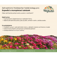 - Pro pozici chystání zakázek požadujeme základní znalost sortlimentu trvalek v latině, fyzickou zdatnost a ochotu pracovat venku za každého počasí.