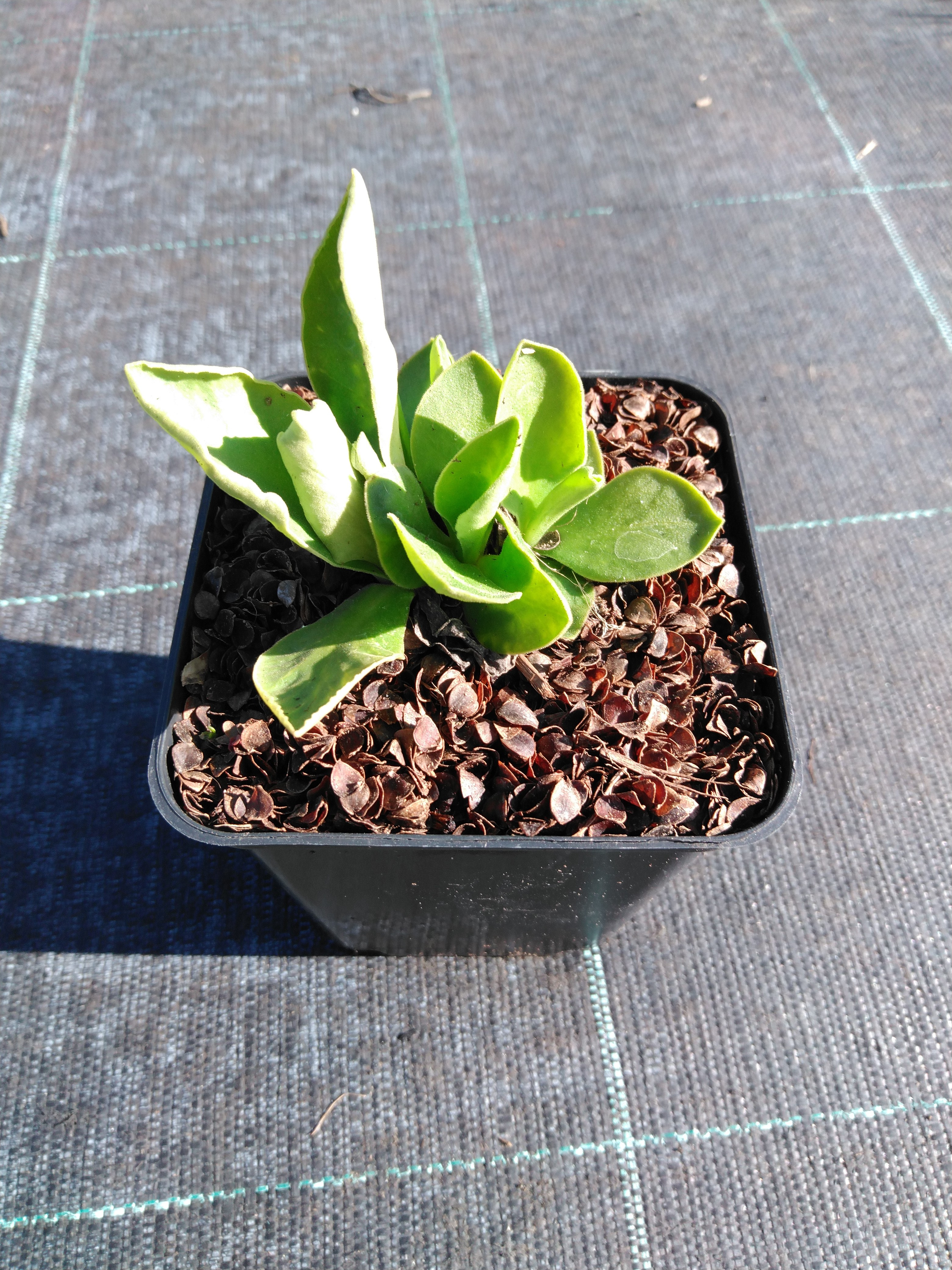 Listy v hustých růžicích, 10 cm vysoké, květy v kulovitém květenství, 20 cm vysoké, bílé, III-IV. Vy